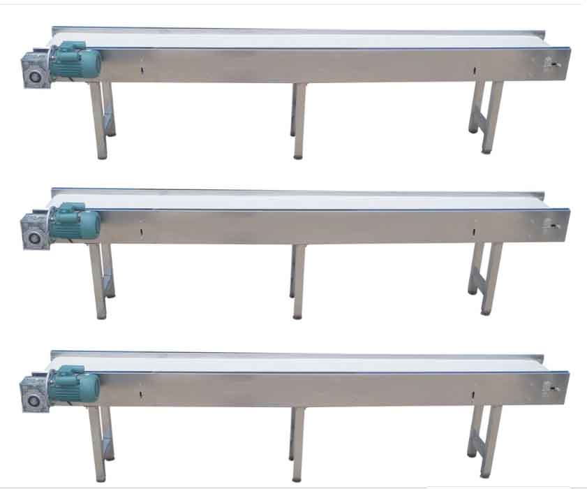 可調速輸送機,該機主要用作產品的水平或有角度遠距離輸送,分為鏈板輸